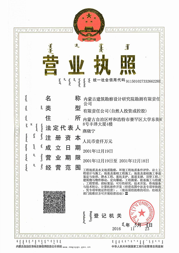 • 內蒙古建筑勘察設計研究院勘測有限責任公司,是全國首家完成 轉企建制的省級建筑勘察設計單位。公司前身為內蒙古建筑勘察 設計研究院勘測分院, 成立于1954年 ,經過六十多年的發展, 現已成為全區技術力量雄厚、專業設置齊全的集巖土工程勘察 、 設計、治理、檢測、監理、咨詢、水文地質勘查、工程測量、科 研為一體的綜合性企業 ... ... [查看詳情]